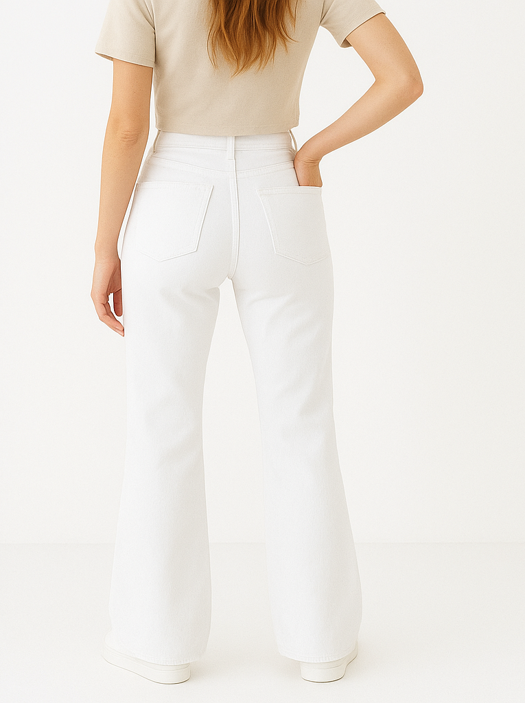 Stylowe i kobiece jeansy damskie wykonane z miękkiego i elastycznego materiału. Wysoki stan podkreśla linię talii, a prosta nogawka z delikatnym rozszerzeniem dodaje nowoczesnego charakteru. Dzięki super elastycznej tkaninie spodnie idealnie dopasowują się do sylwetki i gwarantują wygodę noszenia na co dzień. Doskonałe do letnich i eleganckich stylizacji.